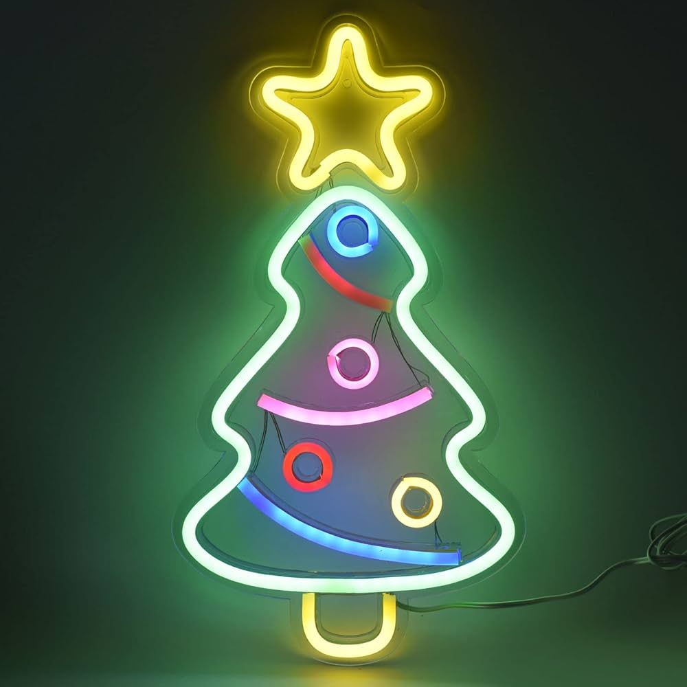 LED霓虹灯圣诞树霓虹灯夜灯节日装饰灯适用于卧室派对装饰灯送给朋友的礼物