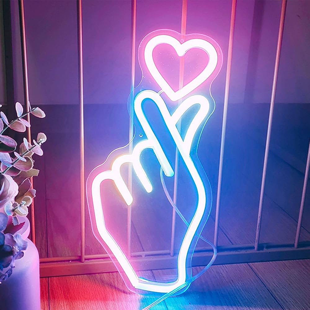 LED 霓虹灯标志 DIY 手指心形霓虹灯标志,适用于卧室儿童房、客厅墙壁装饰的霓虹灯标志,适用于商店、购物中心、酒吧、婚礼派对的个性化霓虹灯标志