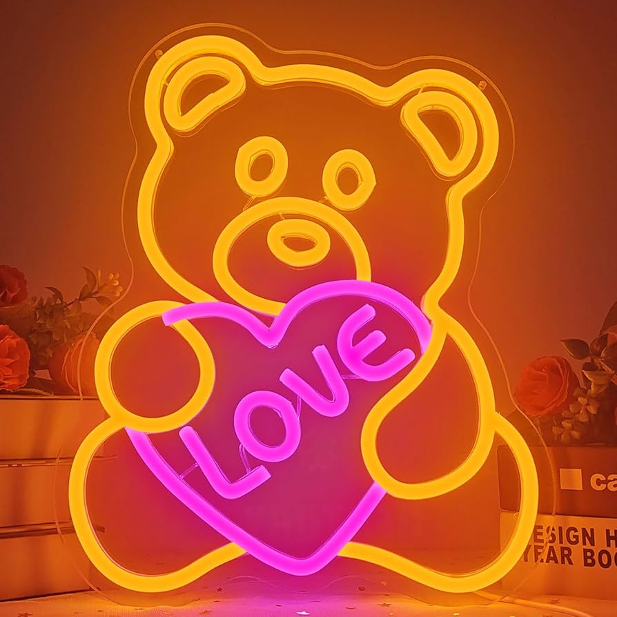 情人節泰迪熊霓虹燈標誌情人節霓虹燈標誌熊附心形LED